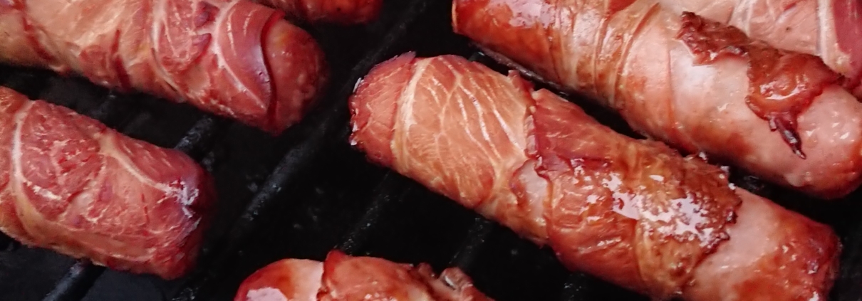Coupe les saucisses en deux et barde chacun d’une tranche de poitrine.