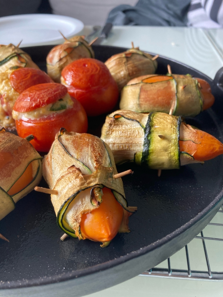 Les disposer dans le plat et mettre à cuire pendant 40mn (le poivron doit être fondant quand on le pique).